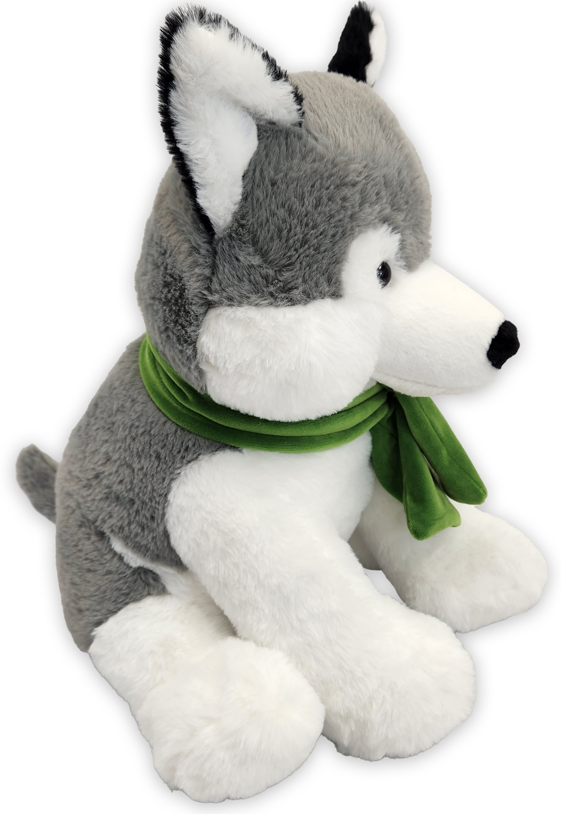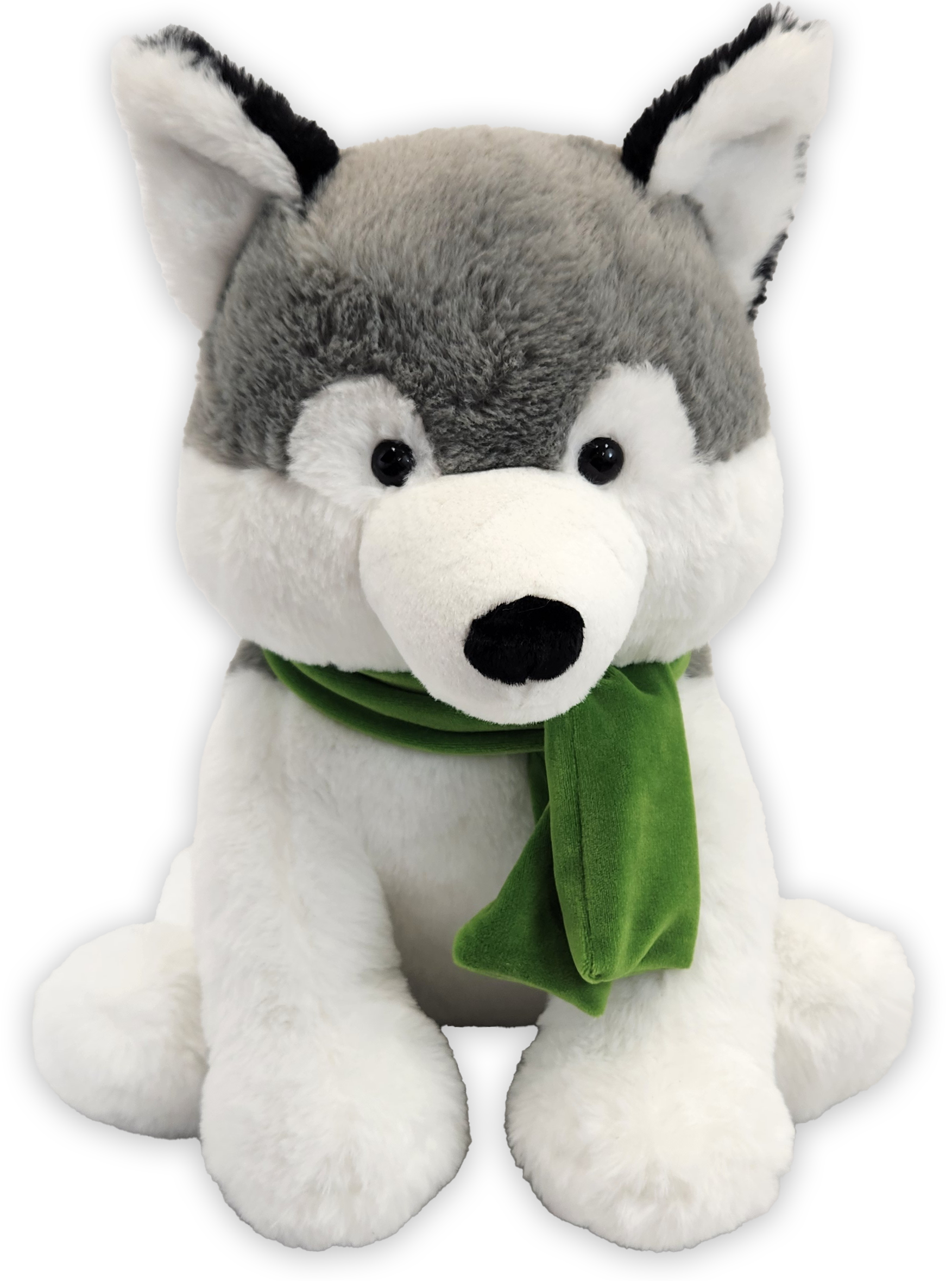 Extra Large Hugger Husky - Loyal, fluffy and full of frosty charm. Hugger with his plush soft gray and white coast, and black tipped ears, this sled-ready sweetheart loves every adventure - from couch to cabin cuddles.