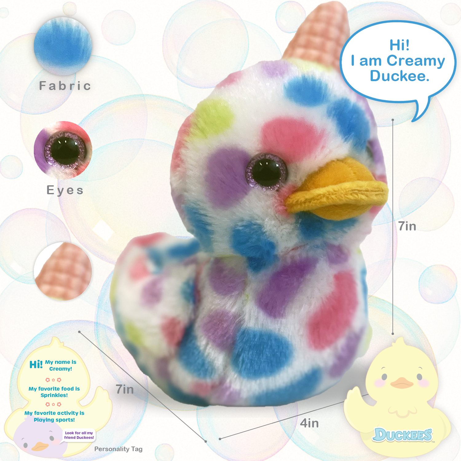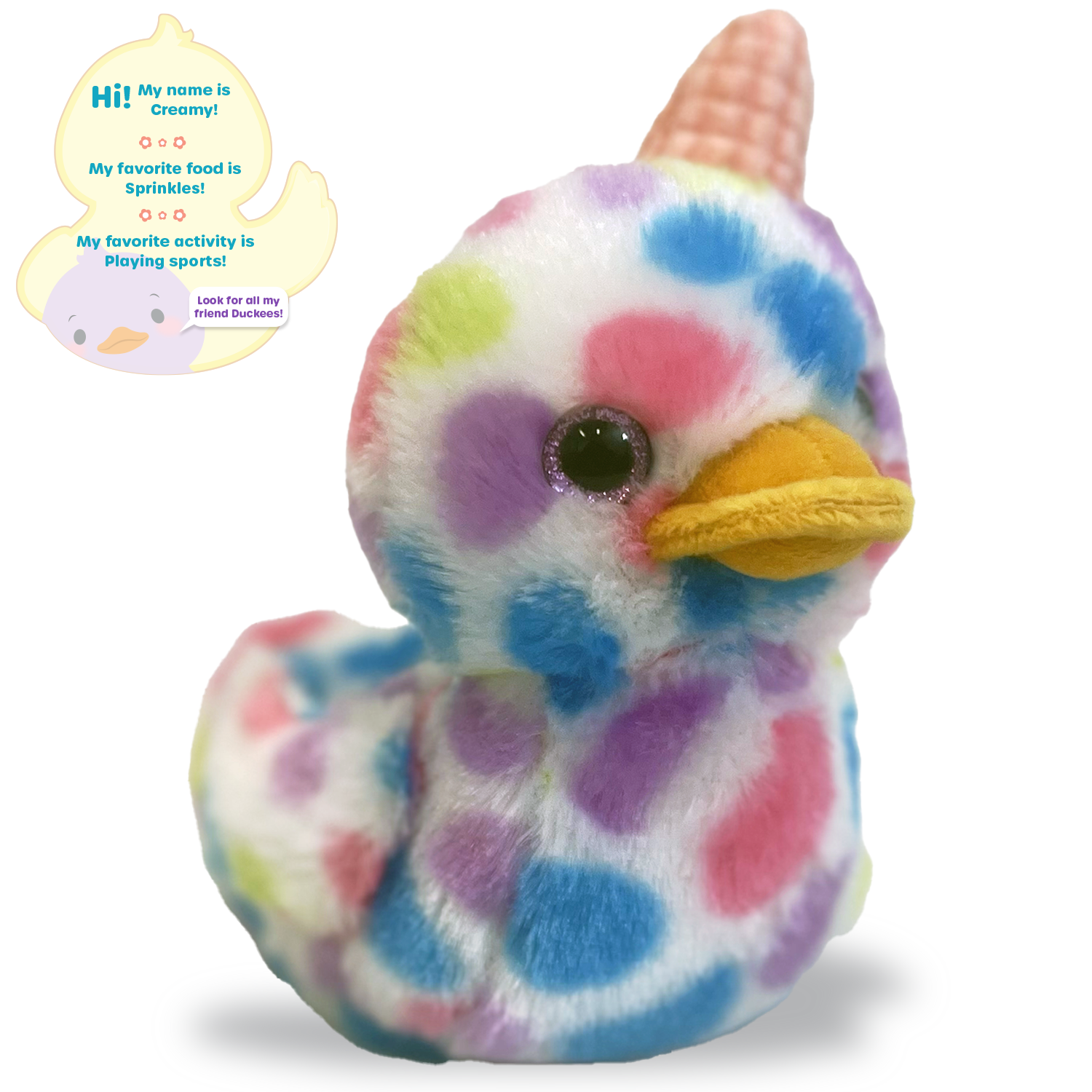 Meet Creamy, the sporty Duckee Ice Cream who loves sprinkles and playing games! This 7" plush pal is delightfully soft, squishy, and ready for endless fun. Designed in the USA and crafted with care, Creamy brings color, comfort, and sweetness to every hug.ย