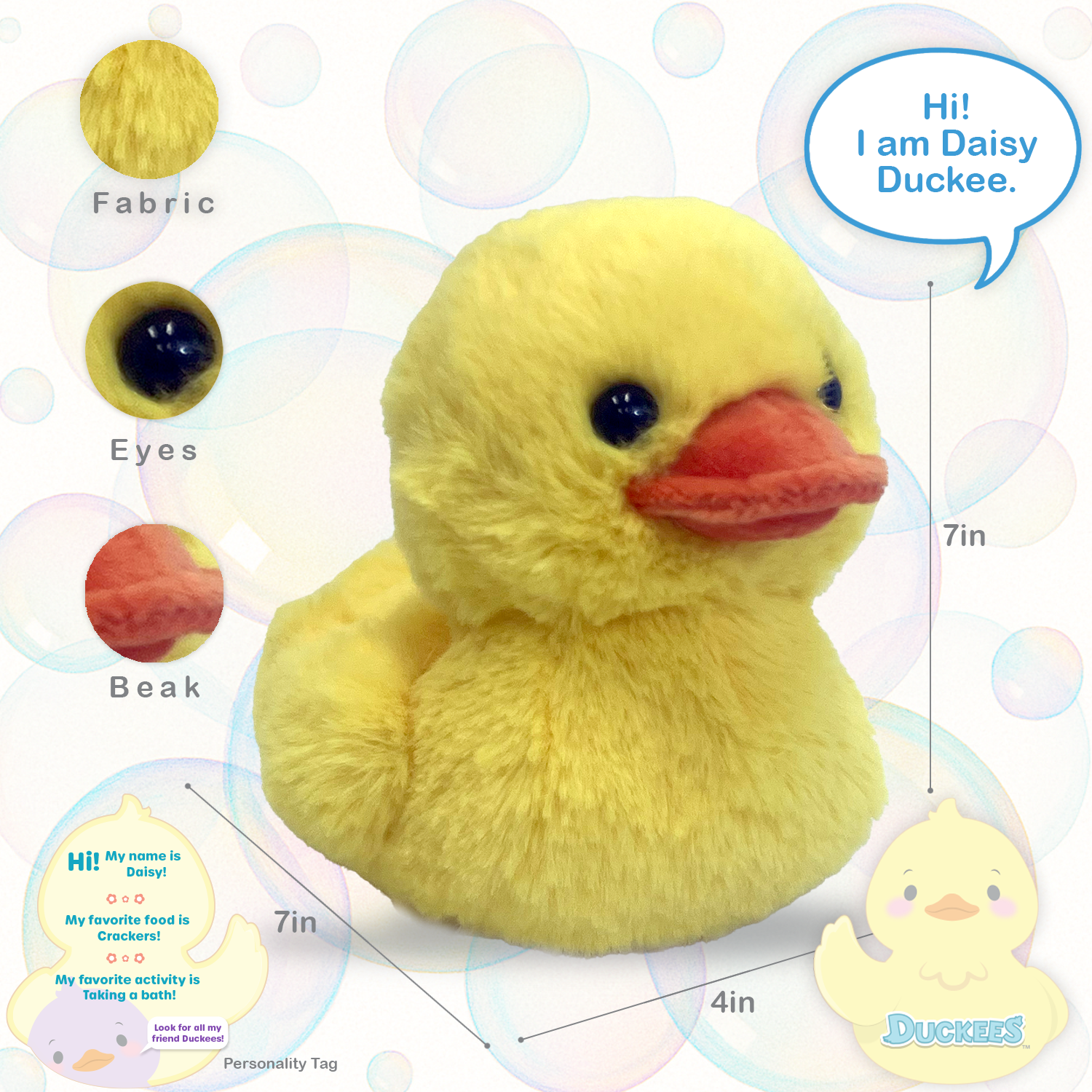 Meet Daisy, the yellow Duckee who loves taking baths! This 7" plush pal is soft, squishy, and full of cozy charm. Designed in the USA and crafted with love and care, Fluff brings warmth, comfort, and smiles to every cuddle.