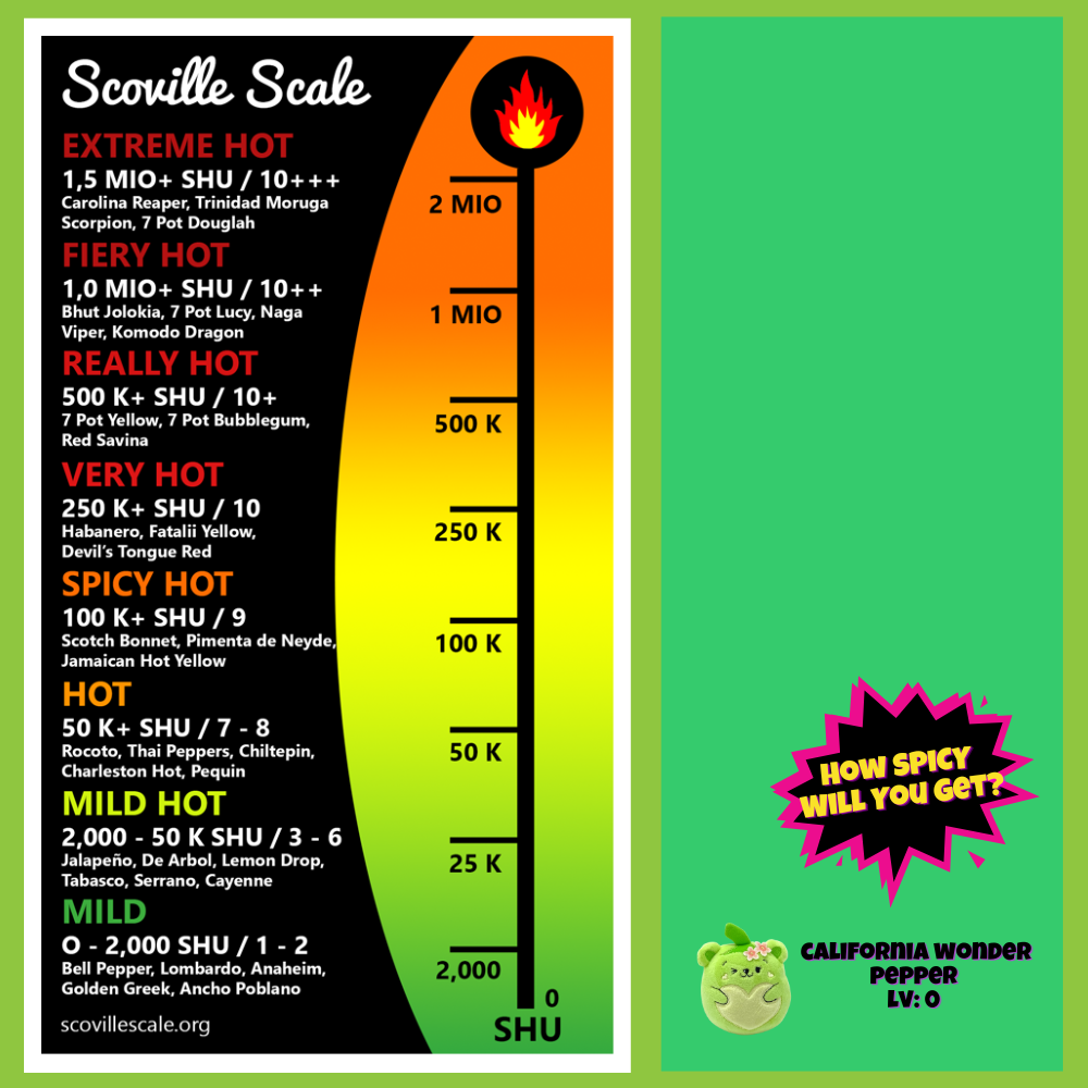Fuegos Spicy-Themed Pepper Plush 6 inch: Green California Wonder Peppers (Mild: level 0)