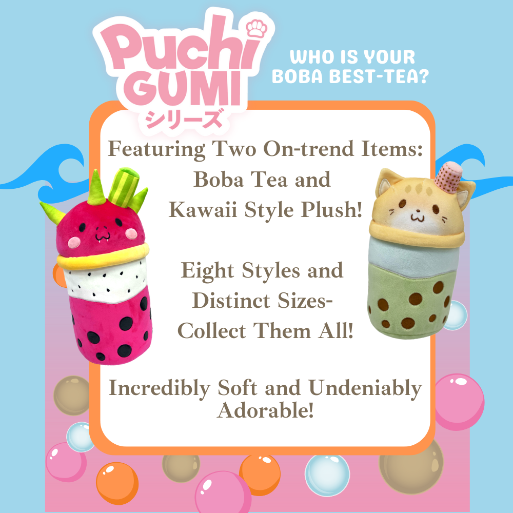 Embrace the cuteness overload with Puchi Gumi, where ""little cute"" meets the delightful world of Boba Teas. Puchi Gumi is designed to capture the essence of youthfulness, innocence, and playfulness in every plush character.