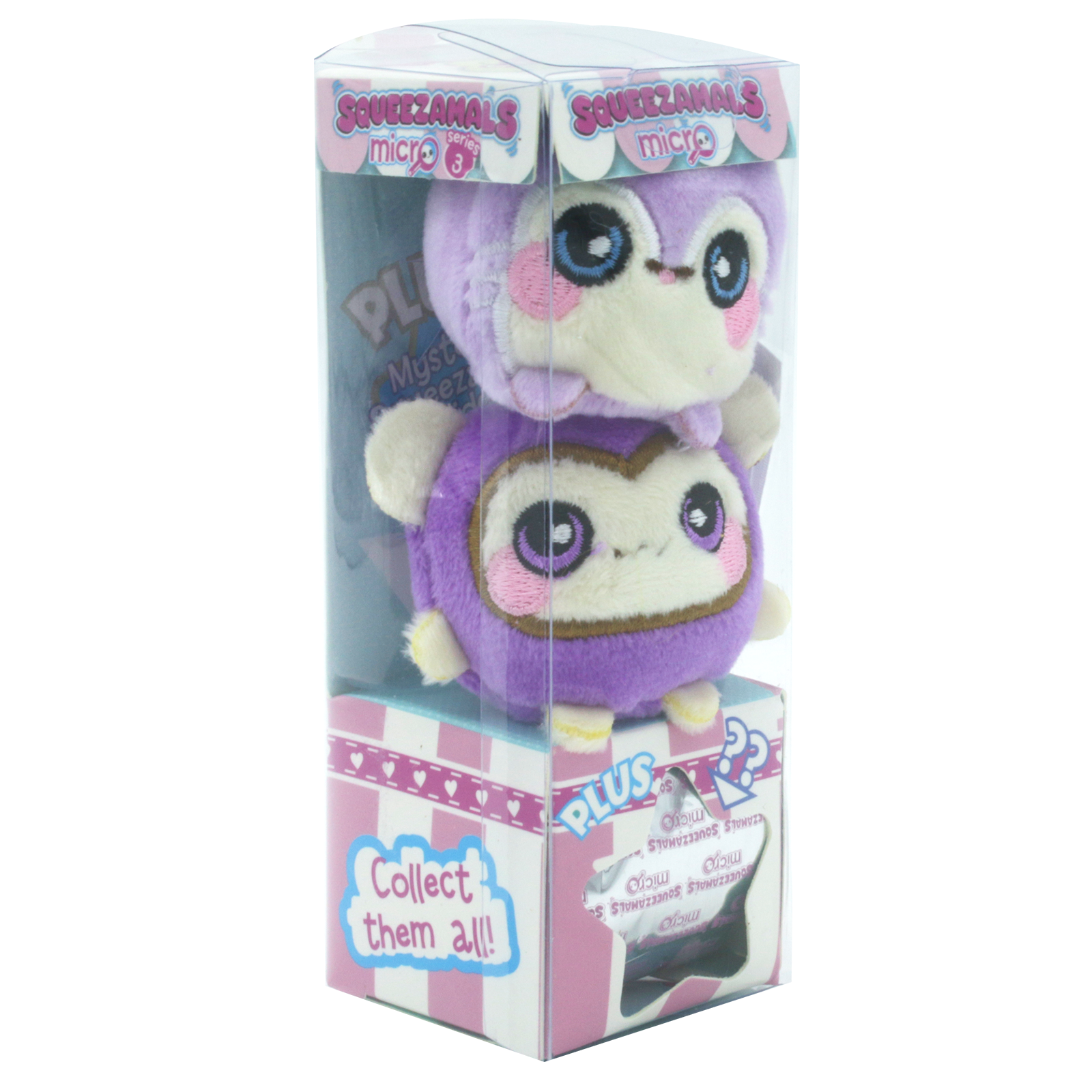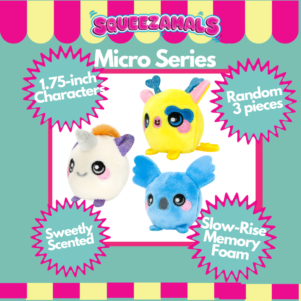 Squeezamals Micro contains 3 packs that are mini Squeezamals with one mystery plush in each pack!