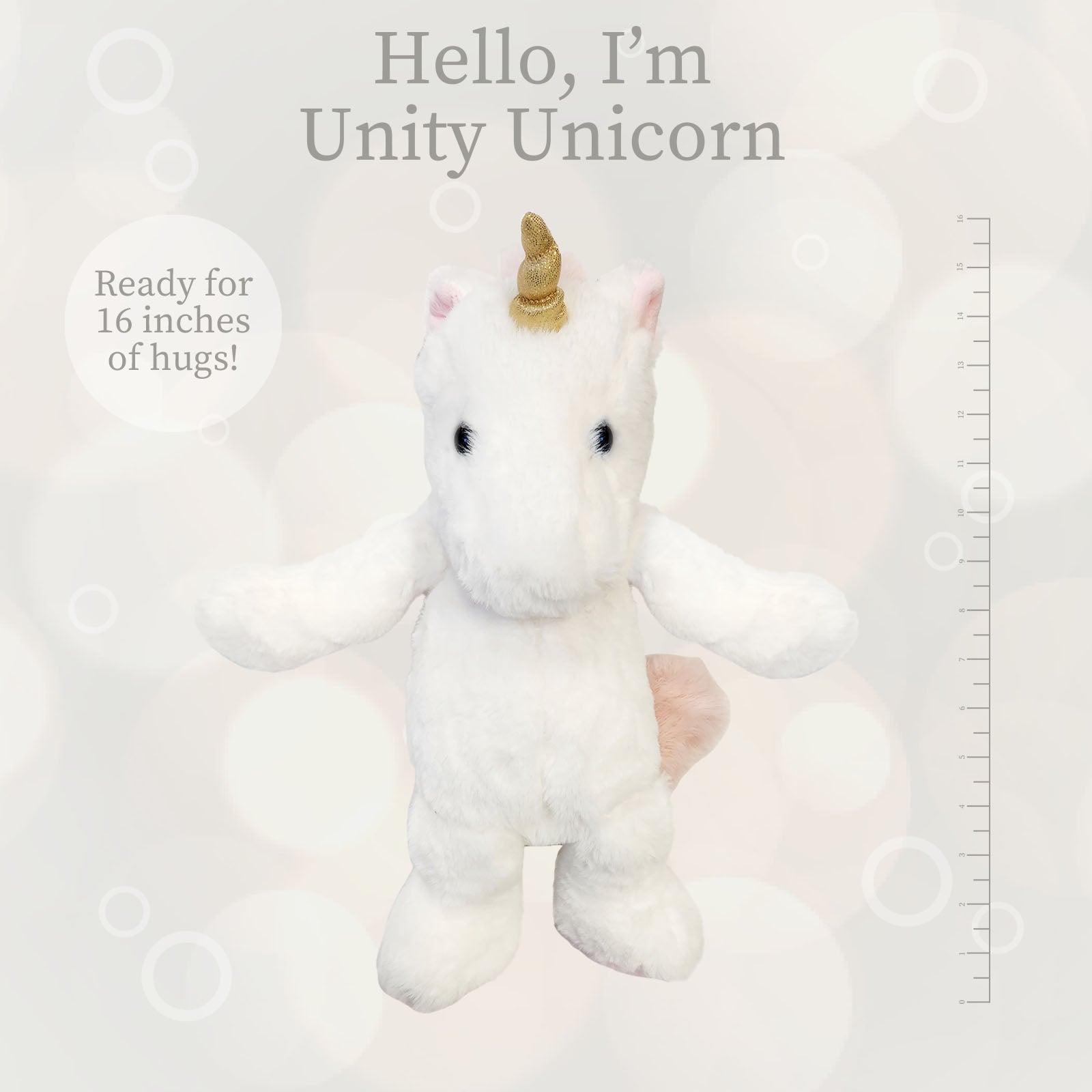 UNITY WHITE UNICORN is a snuggly, cuddly and softy plushie companion. Blissfully lush & loppy & floppy & squishy ready for millions of hugs and memories