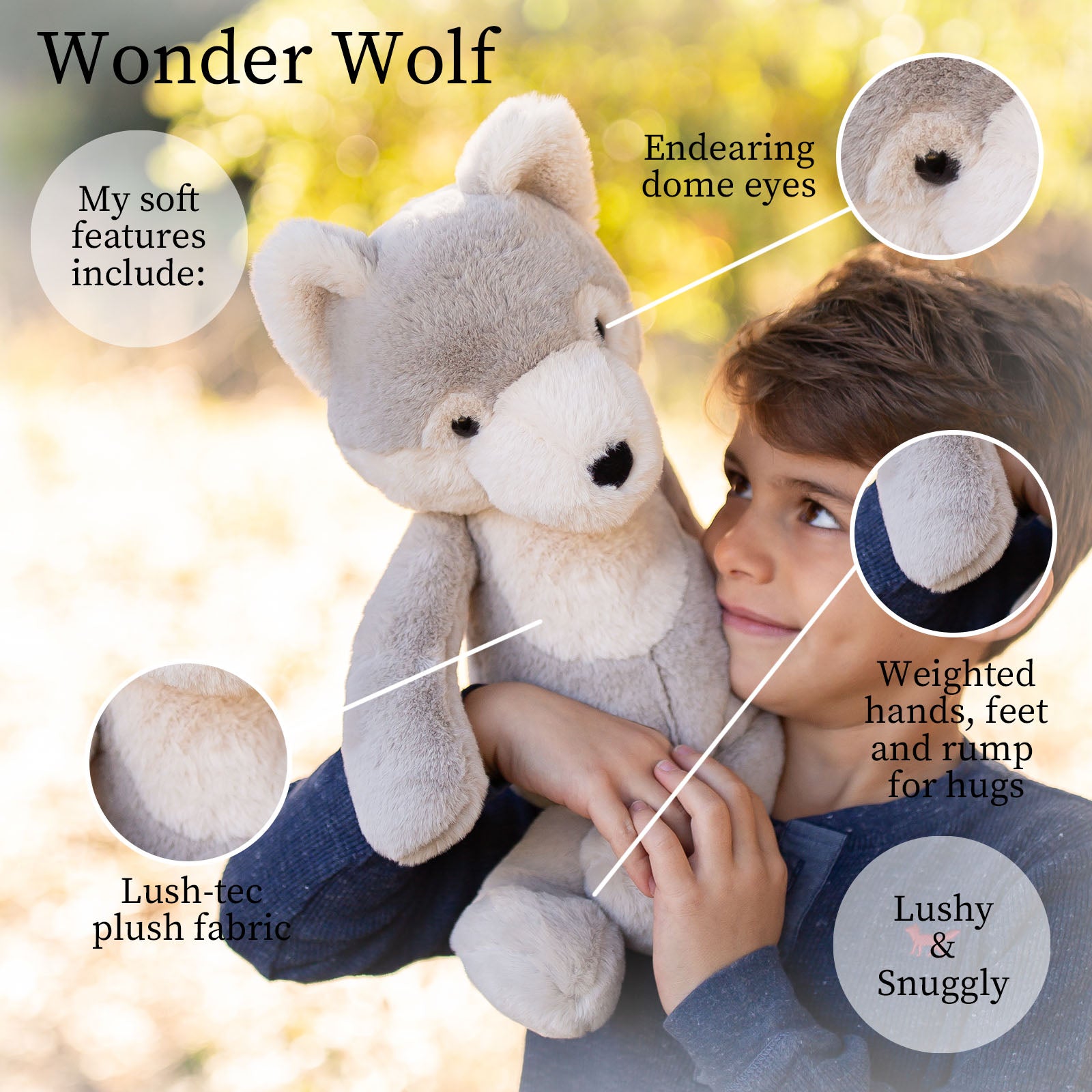 • WONDER GREY WOLF is a snuggly, cuddly and softy plushie companion. Blissfully lush & loppy & floppy & squishy ready for millions of hugs and memories